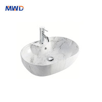 Upgrade your bathroom with this modern oval ceramic vessel sink featuring a marble-look finish. Durable, easy to clean, and perfect for above-counter vanity installations.