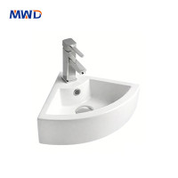 MWD Modern Ceramic Corner Sink for Small Bathrooms – Space-Saving Wall-Hung Basin with Glossy Finish, Easy to Clean & Durable