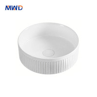 ✨Modern white ceramic vessel sink with vertical ribbed design. MWD's minimalist basin for boutique bathrooms.